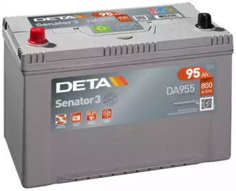 Battery Brand: DETA Battery Code: DB955 Voltage: 12 V Battery Capacity: 95 AH Cold Cranking Amps (CCA): 720 A Length: 306 Width: 173 Height: 222 Post Positions: 1 Terminal Type: EN Hold-down Type: Korean B1 |